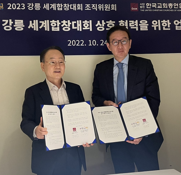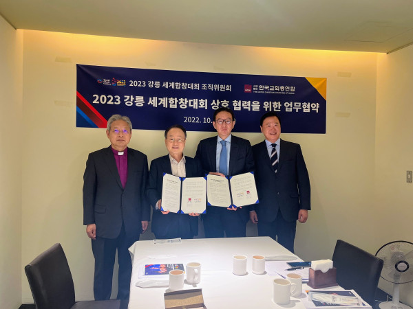 한국교회총연합(이하, 한교총) 류영모 대표회장과 2023 강릉 세계합창대회 허용수 조직위원장은 상호 협력을 위한 양해각서(MOU)에 서명했다.