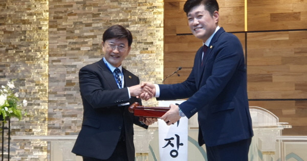 이후 정 당선인에게 엄기호 선거관리위원장이 대표회장 당선패를 교부하고, 임시대표회장 김현성 변호사는 의사봉을 인계했다.