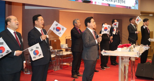 ‘3.1운동 104주년 한국교회 기념예배’가 한국교회총연합(이하, 한교총) 주최로 1일 오전10시30분 여의도순복음교회에서 한국교회 지도자 등 1만여 명의 성도들이 참석한 가운데 개최됐다.