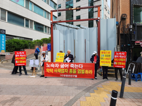 상황이 악화되자, 신 장로와 직원들은 지푸라기라도 잡는 심정으로 집회에 돌입했다. 어설프게나마 현수막을 내걸고 확성기를 들고 지나가는 시민들을 향해 '참좋은친구들'의 실상을 호소하고 있다.