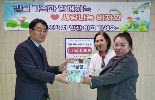 (재)사랑의장기기증운동본부(이하 본부, 이사장 박진탁) 경인지부는 지난 10일, 인천시 부평구의 갈월어린이집(원장 심점숙)이 후원금 1,156,000원을 전달했다고 밝혔다. 이날 갈월어린이집은 지난 11월 4일 진행된 ‘갈월 가족과 함께하는 사랑나눔 바자회’에서 모금된 수익금 전액을 장기기증 활성화를 위해 사용해달라며 기부했다.