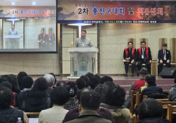예수군사사관학교는 1월 22일부터 24일까지 서울 개봉동 소재 다메섹교회에서 제2차 총진군 대회 및 치유집회를 개최했다.