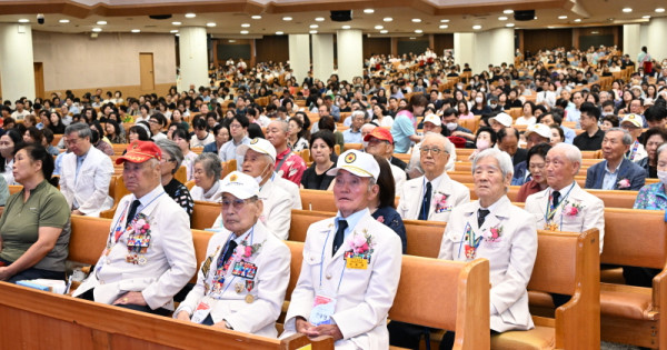 예배에서는 또 참전용사들의 희생과 헌신을 영원히 기억하자는 다짐을 담은 기념영상도 상영됐으며 한목소리로 애국가를 제창했다.