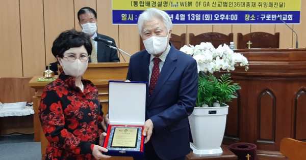 이날 회의는 1부 감사예배, 2부 통합에 관한 배경설명, 3부 재미재단법인 WEM of GA선교법인/WEM국제NGO 제36대 총재 김인순 목사에게 취임패를 전달하는 순으로 진행됐다.