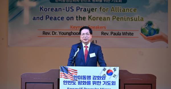 여의도순복음교회와 재단법인 순복음선교회가 주관한 ‘한미동맹 강화와 한반도 평화를 위한 기도회’가 4월 1일(현지시간) 뉴욕시 퀸즈 플러싱에 위치한 디모스홀에서 열렸다.