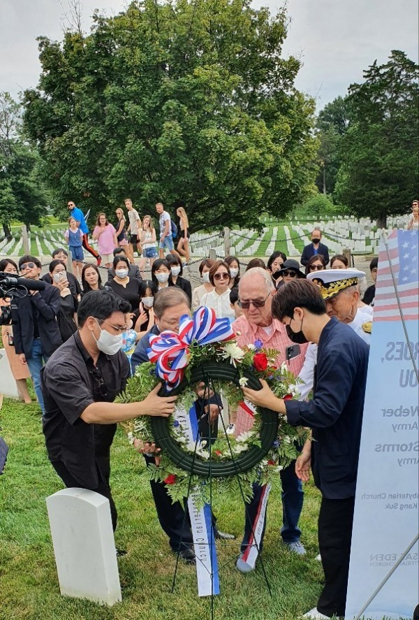 25일 워싱턴을 방문한 새에덴교회 소강석목사와 방미단은 하루 앞선 26일 오후 2시에는 알링턴국립묘지와 한국전참전용사기념공원(Korean War Veterans Memorial Park)을 먼저 찾아 한국전 참전용사로서 ‘미 한국전전사자 추모의 벽’ 건립을 제안했으며, 교회측과는 특별한 인연이 있는 故 윌리엄 웨버(William E. Weber) 대령과 그리고 하비 소톰스(Harvey Storms) 소령의 묘비를 찾아 헌화와 추모의 시간을 가졌다. 또 27일에 한국전참전용사기념공원(Korean War Veterans Memorial Park) ‘미 한국전전사자 추모의 벽’ 준공식에 참여했다.