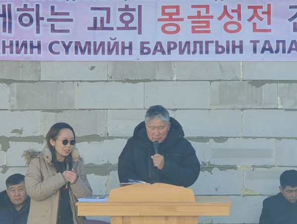 몽골 예수제자교회 어치릉바트 목사는 “이 자리에 교회가 세워지는 것에 감사하다. 이곳은 오늘처럼 추운 맘으로 온 사람들이 따뜻해지는 교회가 될 것이다. 한국의 믿음의 선배들을 통해 받은 은혜에 감사하며 게르성전, 강대상 등 몽골교회를 위해 일해주시며 큰 힘이 되어주시는 김동근 장로님께 감사하다”고 말했다.
