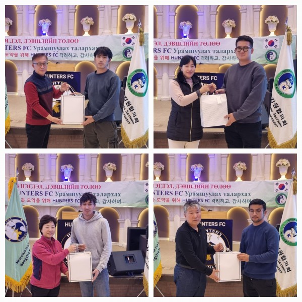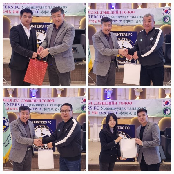 올 8월 구성된 FIFA 등록법인인 몽골 헌터스 기독교축구단(회장,구단주 김동근 장로)의 운영이사로서, 구단주 및 몽골 헌터스 FC 지도목사 알탄쳐지 목사(현. 몽골복음주의협회 회장)와 이사진들이 참석한 가운데 ‘헌터스 FC 격려와 감사의 밤’ 시간을 가졌다.