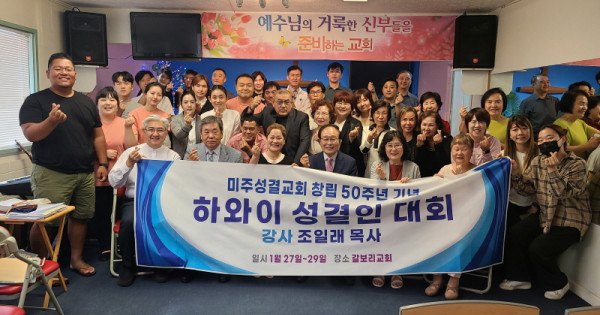 지난 1월 27~29일 하와이 갈보리교회(제키 카오후 목사)에서 열린 미주성결교회 창립 50주년 기념 ‘하와이 성결인대회’에서는 뜨거운 찬양과 기도로 가득했다.