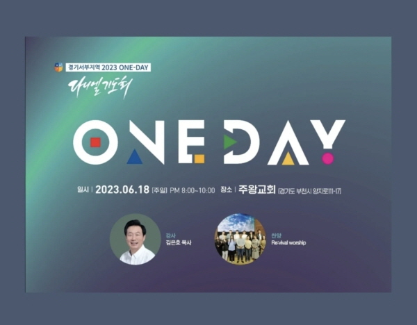 경기서부지역(군포시, 광명시, 과천시, 의왕시, 안양시, 시흥시, 김포시, 부천시) 다니엘기도회 연합회는 오는 6월 18일 오후8시 부천시 주왕교회(담임 박신철 목사)에서 원데이 다니엘기도회를 개최한다.