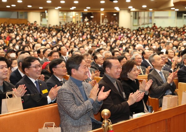 권영세 국민의힘 국회의원(전 통일부장관)과 김영배 더불어민주당 국회의원(전 최고의원)은 이날 예배에 참석해 함께 악수를 나누고 환담을 나눴다.