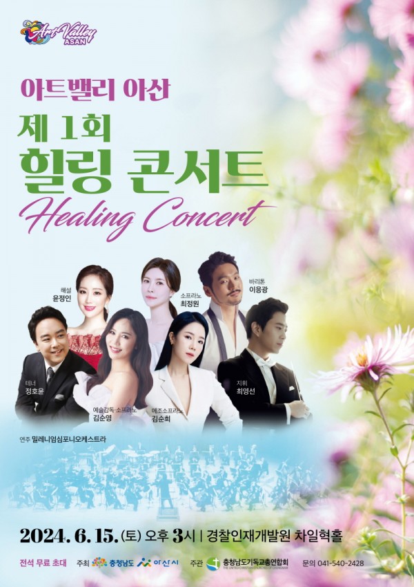 충남 아산시(시장 박경귀)가 주최하고 충남기독교총연합회(총회장 박귀환 목사, 이하 충남기총)가 주관하는 이번 콘서트는 오는 6월 15일 오후 3시 아산시 초사동 ‘경찰인재개발원 차일혁홀’에서 개최된다.