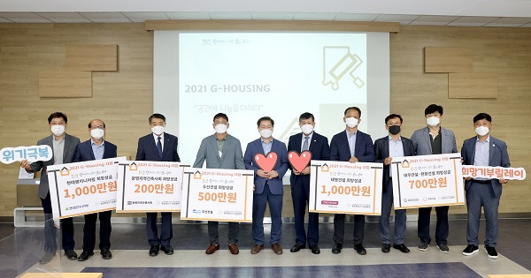 광명시사회복지협의회(회장 이상재)-광명희망나기운동본부는 6일 광명지역건축사회와 태영건설, 대우건설, 한화건설, 두산건설, 현대엔지니어링 등 6개 기업 및 단체들이 참여한 G-하우징 사업 기금 3,400만원 전달식을 진행했다.