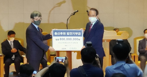 삼일교회(송태근 목사)가 총신대학교(총장 이재서 박사)에 8억원의 발전기금을 전달했다.