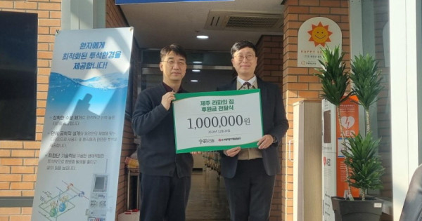 (재)사랑의장기기증운동본부(이하 본부, 박진탁 이사장)는 제주 서귀포시에 위치한 만성신부전 환자들의 쉼터 라파의 집에 따뜻한 후원의 손길이 이어지고 있다고 밝혔다. 이번 후원금은 특별히 신장이식을 통해 두 번째 삶을 살게 된 두 목사가 전달해 의미를 더했다.