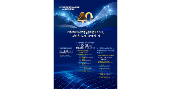 이어진 3부 40주년기념 만찬 및 축하 행사(17:00-19:40)는 축가 바리톤 권용만, 격려사, 40주년기념 독서대회 시상식 순서로 진행될 예정이다.