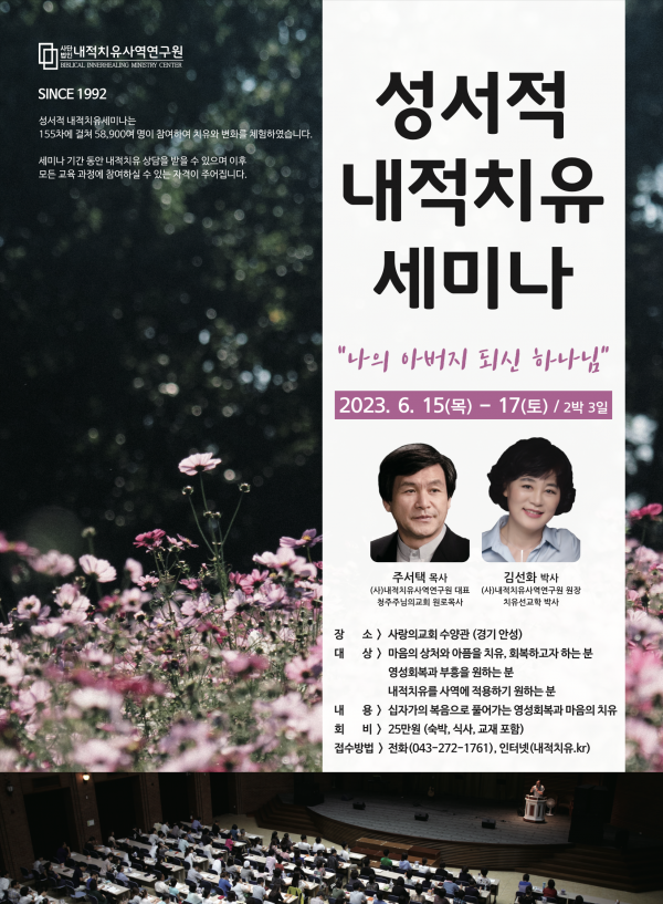 십자가의 복음으로 상처 입은 마음을 치유하는 성서적 내적치유세미나가 3년간온라인으로 진행되다가 2023년 올해 3월 성서적 내적치유세미나에 이어 두 번째 현장 세미나로 진행된다.
