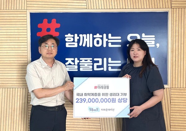 미래생활㈜ 박철 부대표는 “이번 기부가 취약계층 여성청소년들이 청결한 환경에서 학업과 일상에 집중할 수 있는 작은 디딤돌이 되길 바란다”라며 “앞으로도 미래생활㈜는 ‘잘풀리는집’을 비롯한 생활 위생 브랜드를 통해 대중에게 필요한 물품을 생산하며 누구나 불편함 없는 일상을 누릴 수 있도록 꾸준히 사회공헌 활동을 이어갈 것”이라고 덧붙였다.