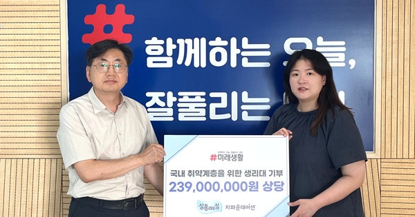 국제개발협력NGO 지파운데이션(대표 박충관)은 미래생활㈜(대표 김광호)이 취약계층 여성청소년을 위해 약 2억 3,900만 원 상당의 생리대 51,792개를 기부했다고 24일 밝혔다.