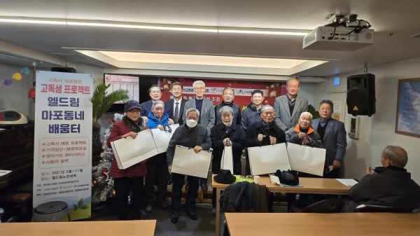 쪽방촌과 독거노인을 비롯한 거동 불능한 어르신을 섬기는 (사)월드뷰티핸즈(회장 최에스더 신한대 교수)와 (사)해돋는마을(이사장 장헌일 목사, 신생명나무교회)과 고독생프로젝트 지원 한국공공정책개발연구원은 기감남선교회경기연회연합회(회장 허성령 장로)주관으로 지난 12월 10일 엘드림노인대학에서 쪽방촌과 독거어르신 초청 크리스마스 사랑의 밥사랑과 선물 전달식을 갖고 따뜻한 마음을 전했다.