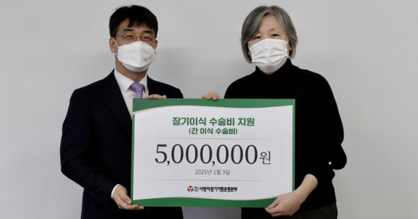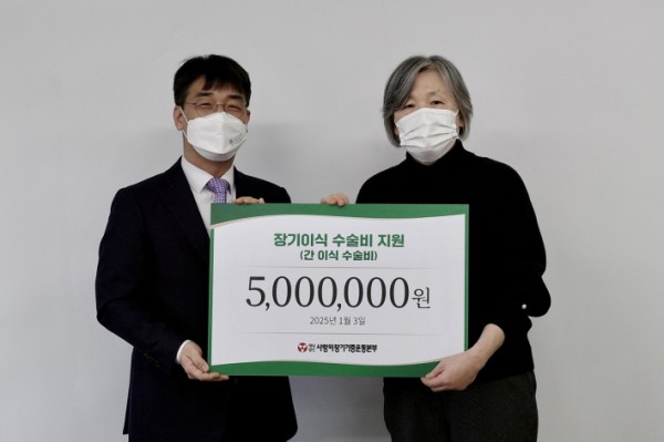 (재)사랑의장기기증운동본부(이하 본부, 이사장 박진탁)는 지난 3일, 간이식 환자 이대준 씨(60세, 남)의 간이식 수술비 일부인 500만 원을 지원했다고 밝혔다.