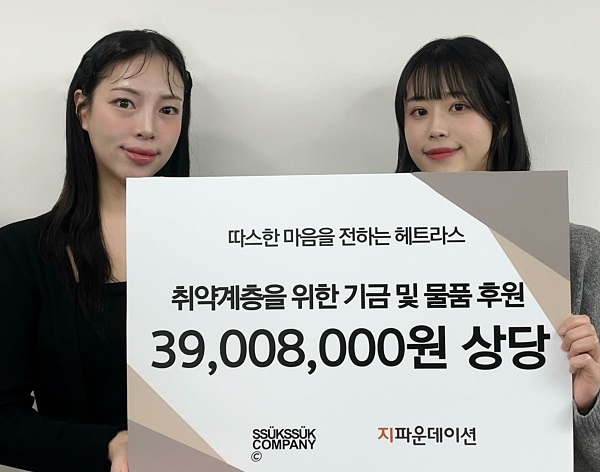 ㈜쑥쑥컴퍼니는 2,900만 원 상당의 헤트라스 퍼퓸 핸드크림 2,960개와 기금 1,000만 원을 지파운데이션에 기부했다. 해당 기부금품은 저소득 아동청소년, 미혼한부모 가정, 독거노인 등 도움이 필요한 이웃에게 전달될 예정이다.