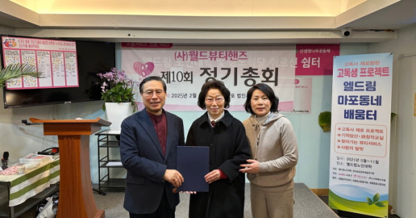 소셜서비스NGO 전문기관인 (사)월드뷰티핸즈(WBH 이사장 장헌일, 회장 최에스더 신한대 K뷰티학과 교수)는 23일 마포구 대흥동 엘드림노인대학에서 정기이사회 및 제10회 정기총회를 열고 2024년 사업보고와 결산, 2025년 사업계획 및 예산을 의결했다.