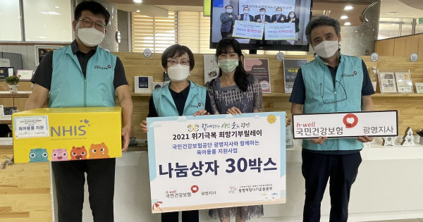 국민건강보험공단 광명지사(지사장 조해곤)에서는 2021년 8월 3일(화) ‘Mom's 건이강이 육아용품 지원’ 나눔상자 30박스(300만원 상당)를 광명시사회복지협의회(회장 이상재)-광명희망나기운동본부에 전달하였다.