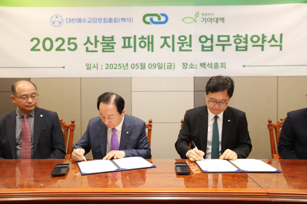 이번 협약은 상호 협력을 통해 최근 산불 피해를 입은 경북 지역의 교회 재건을 지원하고, 이를 통해 지역 선교 복음화에 기여하기 위해 마련됐다. 양 기관은 이번 협약을 통해 총 4억 5,000만 원 규모의 재건 사업을 공동으로 추진할 예정이다.
