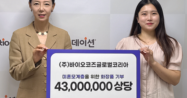 한편, (주)바이오코즈글로벌은 피부과학 기반의 헬스케어 기업으로, 인류의 삶의 질 향상을 목표로 20년간 기능성 스킨케어 솔루션을 연구·개발해왔다. 특히 이번에 기부한 제품에 함유된 독자 성분인 SPM은 한국을 비롯해 미국, 일본, 중국 4개국에서 특허를 보유한 성분으로, 피부 트러블 완화와 장벽 강화에 도움을 주는 것이 특징이다.