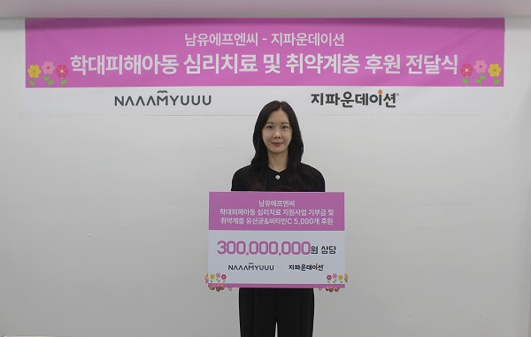 남유네, 국내 취약계층 아동·청소년 위해 지파운데이션에 3억 원 상당 기부금품 전달