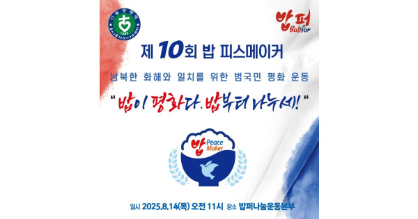 광복 80주년을 맞이하여 평화통일의 대안으로 남과 북이 함께 따뜻한 밥을 함께 나누는 ‘제10회 밥 피스메이커’ 행사가 8월 14일, 청량리 밥퍼 나눔운동본부에서 진행되었다.