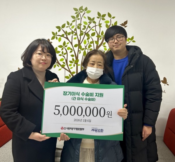 설상가상으로 뇌사자를 통한 간이식 대기 기간이 길어지면서, 이 씨의 고통스러운 투병은 기약 없이 이어졌다. 이 모습을 곁에서 지켜본 아들이 간 기증을 결심했지만 수술비 부담에 이 씨는 이식 수술 결정을 내리지 못했다. “이미 감당하기 어려울 만큼 커진 의료비에 더해, 이식 수술로 또 한 번 아들에게 부담을 지우는 것 같아 마음이 무거웠다.”라고 밝힌 이 씨의 사연을 접한 본부는 논의 끝에 수술비 중 500만 원을 지원하기로 결정했다. 이번 지원은 세광교회(담임목사 최승필)에서 어려운 환자들을 위해 사용해달라며 본부에 전달한 기부금을 통해 이루어져 의미를 더했다.