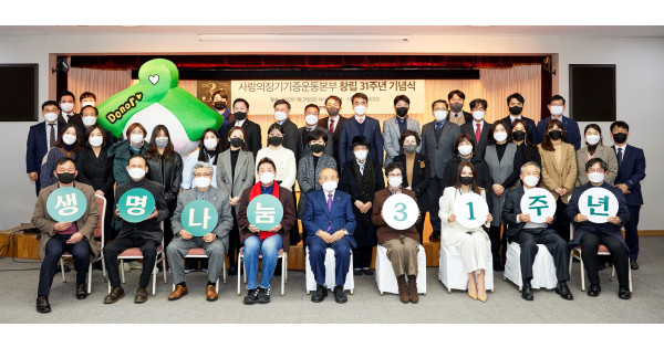 사랑의장기기증운동본부(이사장 박진탁, 이하 본부)는 지난 21일 오후 2시, 서울 YWCA 대강당에서 창립 31주년을 맞아 기념행사를 개최했다고 밝혔다. 기념식은 참석 인원을 최소 인원으로 제한하는 등 방역지침을 준수하여 진행됐다.