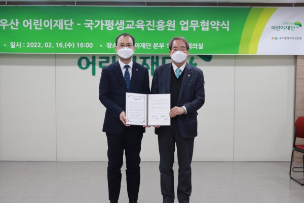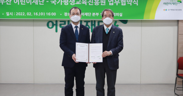 전날 서울시 중구에 위치한 초록우산어린이재단 본부에서 진행된 협약식에는 강대중 국가평생교육진흥원 원장과 이제훈 초록우산어린이재단 회장을 비롯한 양기관 관계자들이 참석했다.