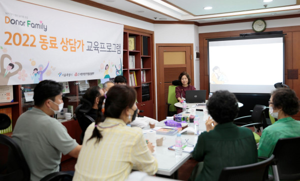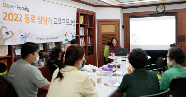 (재)사랑의장기기증운동본부(이사장 박진탁 목사, 이하 본부)는 2022년 서울특별시 장기기증 활성화 사업의 일환으로 지난 6월 21일, 서울 지하철 충정로역사 내에 있는 도너패밀리 사랑방에서 가족과의 이별을 먼저 경험한 도너패밀리들을 대상으로 ‘동료상담가 교육프로그램’을 개강했다고 밝혔다. 도너패밀리는 2013년 국내 최초로 시작된 뇌사 장기기증인 유가족 자조모임으로, 이번 교육프로그램에는 그동안 본부가 진행한 뇌사 장기기증인 유가족 예우 프로그램에 활발하게 참여해온 도너패밀리 5명이 참여했다.