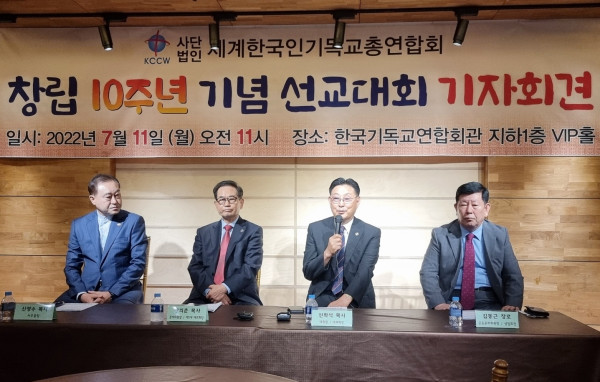 대회를 준비하고 있는 창립 10주년 기념 선교대회 준비위원회(준비위원장 황의춘 목사, 이하 준비위)는 11일 서울시 종로구 소재 한국기독교연합회관 지하 1층 VIP홀에서 기자회견을 갖고, 대회 준비상황을 전달했다.