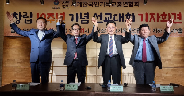 사단법인 세계한국인기독교총연합회(이하 세기총, 대표회장 신화석 목사, 사무총장 신광수 목사)가 창립 10주년을 맞아 오는 10월 4일부터 18일까지 기념대회와 선교세미나 등 다양한 기념행사를 개최한다.