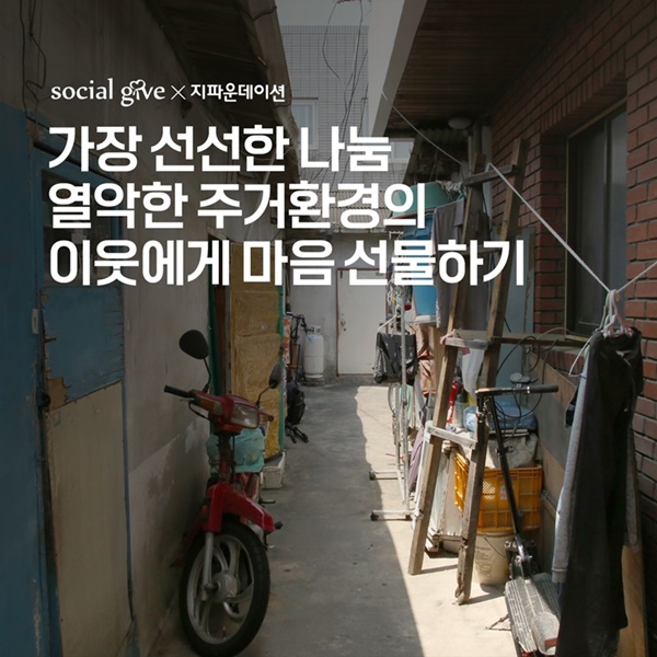 이에 지파운데이션은 열악한 주거환경에 살고 있는 취약계층 여름지원 캠페인을 진행한다.