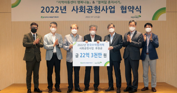 초록우산어린이재단(회장 이제훈)은 한국수력원자력㈜(사장 정재훈)과 함께 22일 서울시 중구 초록우산어린이재단 본부에서 ‘2022년 미래세대를 위한 사회공헌사업 협약식’을 진행했다.