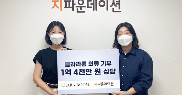 지파운데이션 담당자는 “소외된 이웃을 위해 나눔을 실천해 주신 클라라룸에 감사드린다”라며, “의류와 함께 건네 주신 응원도 취약계층에게 닿을 수 있도록 전달하겠다”고 전했다.