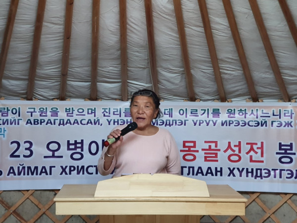 나산바트 전도사는 “이렇게 성전을 건축할 수 있도록 새벽부터 달려온 몽기총과 후원해 주신 한국 오병이어 교회에 감사하다. 주신 말씀처럼 충성을 다하여 일하겠다”며 “몽기총의 게르성전 건축활동 소문을 익히 듣고, 신청하고 기대하며 '우리에게도~' 하며 기도해 왔었는데 드디어 이렇게 성전이 생겨 너무 기쁘고 감사하다”며 인사했다.
