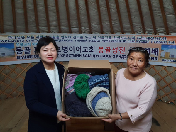 또한 지역 전도와 앙육을 위해 몽기총에서 현지어로 번역, 출판하여 몽골 현지 사역자를 대상으로 목회자 세미나를 하고 있는 ‘십자가의 길/저자:권영구 목사’ 목회, 양육교재 시리즈와 성경만화 엘리야(광명 광산교회 오세철 집사 후원)를 전달했다.