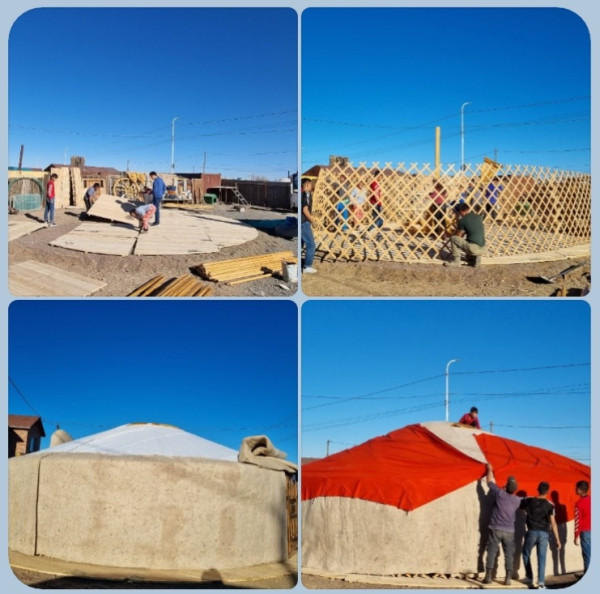 건축과 관련, 몽기총은 17일 새벽어둠을 가르며 쉼 없이 달려 울란바트르시에서 약 600여 km 떨어진 우문고비 아이막 달란가드가드솜에 점심 무렵 도착하여 바로 게르성전 건축을 시작 은혜와 기쁨 가운데 순조로이 건축을 마치고 봉헌감사예배를 드렸다.