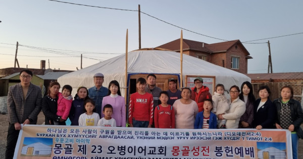 광명 오병이어교회(권영구목사)가 몽골기독교총연합선교회(법인회장 김동근 장로)를 통해 몽골에 제23교회를 건축하고 17일 봉헌했다.