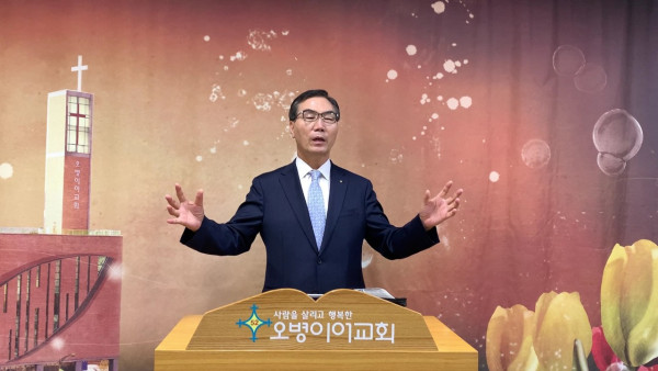 몽기총의 특별찬양(곡명: 기뻐하며 왕께) 후에 광명오병이어교회 담임 권영구 목사가 영상으로 말씀을 전했다.
