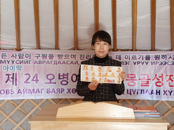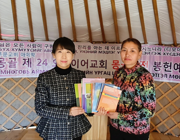 또한 지역 전도와 앙육을 위해 몽기총에서 현지어로 번역 출판하여, 몽골 현지 사역자를 대상으로 목회자 세미나를 하고 있는 ‘십자가의 길’(저자 권영구 목사) 목회, 양육교재 시리즈와 성경만화 엘리야(광명 광산교회 오세철 집사 후원)를 전달했다.