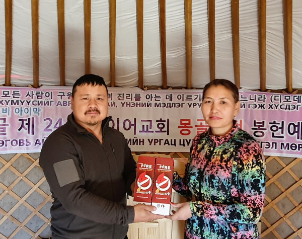 이번 몽골 제 24오병이어교회 게르성전은 광명 오병이어교회 조성재 신주은 집사부부의 후원으로 이루어졌다.