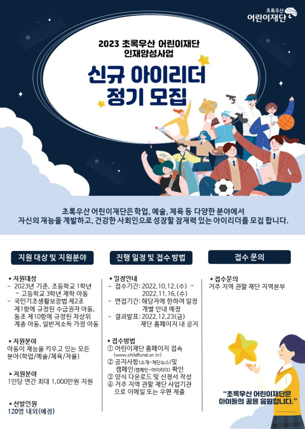 아이들의 꿈, 우리가 책임진다…초록우산어린이재단, 인재양성사업 ‘2023년 신규 아이리더’ 모집