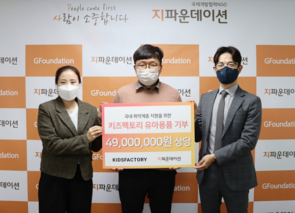 지파운데이션 관계자는 “물품기부 또한 현금기부와 동일하게 취약계층에게는 살아갈 희망이 된다”며 “취약계층 가정에 품질 좋은 유모차 유아용품을 전달할 수 있어 기쁘고, 기부에 동참해주신 키즈팩토리 관계자분들께 진심으로 감사드린다”고 전했다.